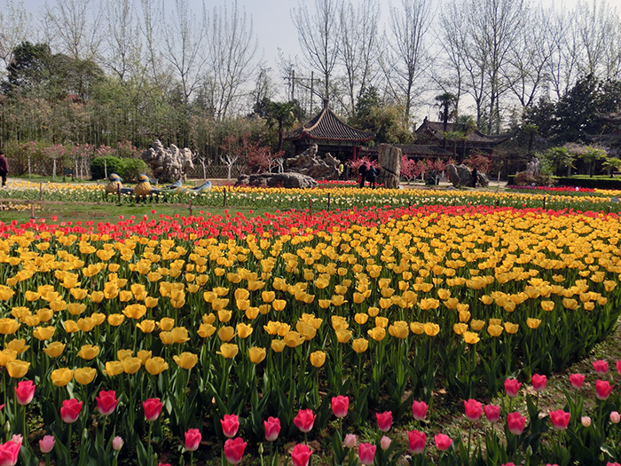 走入公园内,最让人赏心悦目是那汪宽阔的兴周湖,湖水清澈碧波荡漾,岸边杨柳枝条随风飘舞,绕湖小道逶迤曲折,道边郁金香色彩鲜艳,大有光临杭州西湖之感觉。真是美极了、妙极了,大家争先恐后在湖边、花前、石旁摄影留念,我带着一只小三角架,此时,发挥了拍摄集体照的作用,在这片迷人的环境中留下了难以忘怀的影像记忆。从公园出来,我们还顺道参观了公园门前的“民俗博物馆”,馆内展示的宝鸡地方特色浓郁的木版年画、剪纸、刺绣,草编工艺品、皮影社火脸谱等民俗风情,让我们这些外地人对宝鸡朴素而神秘的民间艺术大长见识、对宝鸡人民表现出的勤劳、聪明和智慧十分敬佩。