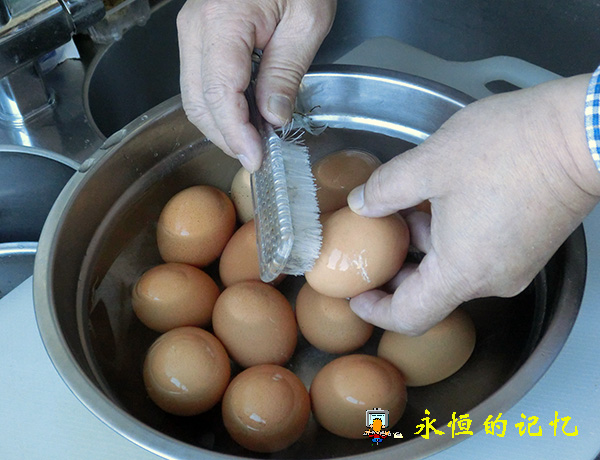 2、鸡蛋的清洗。由于生鸡蛋沾染有鸡粪便等污物,一定要将其外壳用毛刷加以清洗,以确保干净卫生。