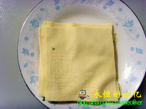 4、将浸洗过的豆腐皮切成150mm见方大小(见下图);