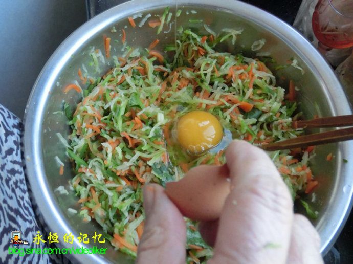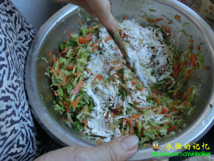 9、加入少量面粉(粘合剂)后,将所有物料用筷子充分搅拌。