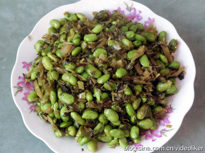 用此方法所炒的“雪里蕻毛豆”,让我在遥远的北方能品尝到来自家乡的美食。此雪里蕻酸中带甜,毛豆酥中带香,吃口爽快,营养丰富,老少皆宜食用。