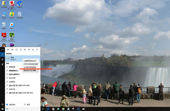 2、在桌面左下方搜索栏中输入“画图”二字,即弹出最佳匹配“画图”工具软件提示菜单,用鼠标右键点击后,同样有四个选择(以管理员身份运行,打开文件所在位置,固定到“开始”屏幕,固定到任务栏),我推荐选用“固定到任务栏”。