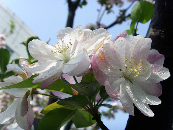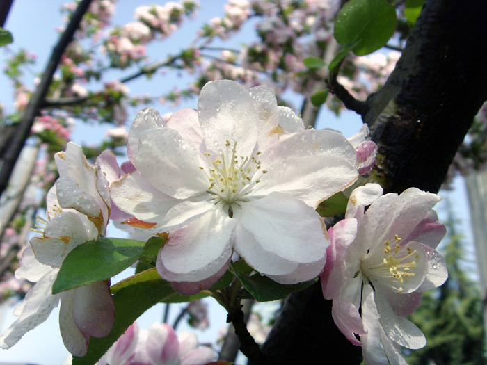 所以,查了许多资料,终于找到一个科学根据,就是海棠分了“木本”和“草本”二个科目,据明代《群芳谱》记载:海棠有四品,皆木本。“四品”指的是:西府海棠、垂丝海棠、木瓜海棠和贴梗海棠,它们都是蔷薇科的植物,但西府海棠、垂丝海棠属苹果属,而木瓜海棠和贴梗海棠属木瓜属。一般的海棠花无香味,只有西府海棠既香且艳,是海棠中的上品。找到上述史料根据的同时,更现实是我的“亲闻”,我用鼻子靠近花瓣,居然阵阵清香扑鼻而来,那样的清爽,那样的现实,令我冲口高喊:“海棠有香”。