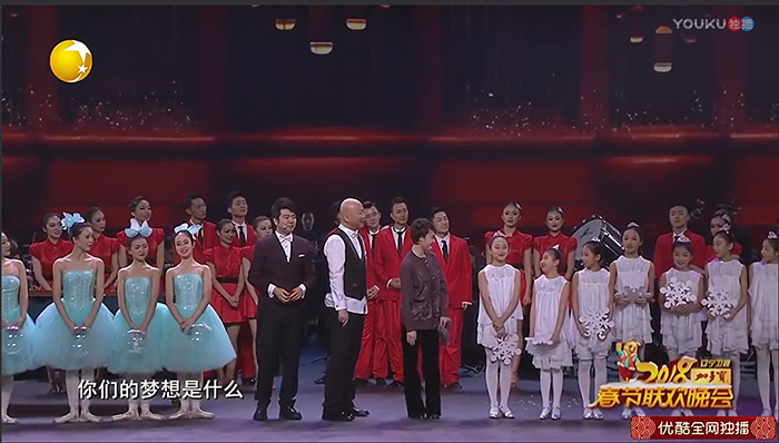 第三层次,通过朗朗和郭冬临二位大师关于“梦想”的提问,实现与舞台众年轻演员以及观众之间进行互动,通过众人之口来体现“中国梦”的深入人心,不仅很好地切合了剧本的主题,而且极大地提升节目的精神内涵,让此“交响乐小品”更具群众性、人性化和感染力。但本人认为,如果小演员同样用“春夏秋冬”手法来回答会更精彩,如梦想当老师的女孩可以这样说:我梦想要成为教育战线春天秧苗的播种人,为祖国培养接班人而“春蚕到死丝方尽……”