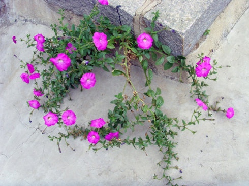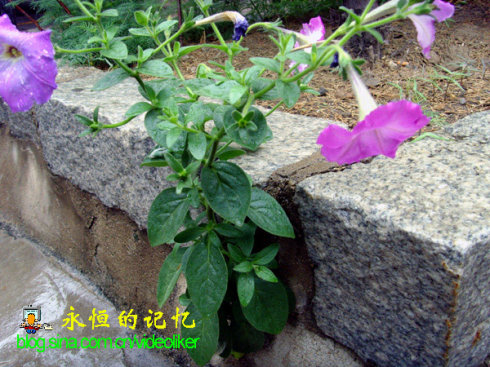看枝叶和花瓣,好像是矮牵牛花。不知何时滚入一粒种子,竟如此顽强与不屈。向“小花”学习,也塑造顽强与不屈。至少精神上是如此。 …2009-7-28 18:51