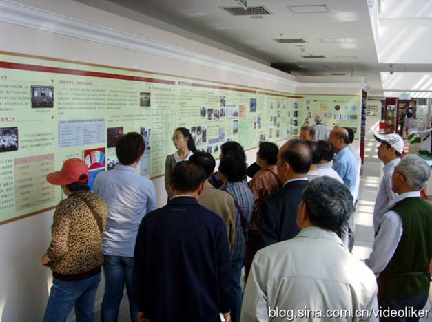 由于外地同学下榻的后勤二部宾馆就在学校北门,故首日回母校之行的活动就变得很简单,步行踏上横跨在凌北路上的天桥就进入了校园。第一项活动就是参观校史馆,学校专门派了一位师弟和一位师妹当讲解员。在许多泛黄了的旧图片中,大家猜测着哪座曾是学习、生活过的教学大楼和宿舍,寻找着曾经教导过我们的校领导和老师的熟识脸庞。看到成就展中母校所取得的辉煌成就,我们感到由衷的高兴和自豪。大家又围拢在一张巨大的校貌立体示意沙盘前合影留念。