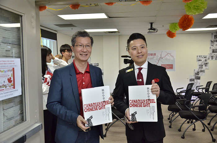 为了感谢华人祖辈为加拿大做出的贡献,灯会组委会特别从第一部反映加拿大筑路华工一百多年前奋斗史的大型画册《枫骨中华魂》中精选了150张照片,举办历史回顾展,以此纪念百年前修建加拿大铁路的中国人,希望人们在享受当下美好生活的同时铭记历史,感谢华人祖先对加拿大的贡献,建设更加美好的未来。陈国治厅长非常认真和仔细地参观了该项图片展,《枫骨中华魂》编著者李宁玉博士特别将该本精装画册赠送给陈国治厅长、RBC皇家银行代表林嘉华先生以及参与活动的其他嘉宾,并授权灯会合作媒体《加中新闻》自2017年7月1日起对这部专著进行连载。