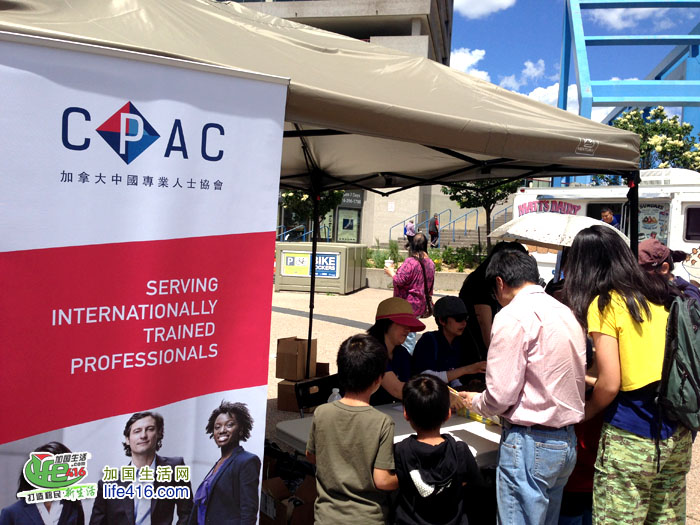 来华夏节上逛摊位也是每年的传统项目:先用缙云烧饼、川味小吃、杭州笋干、五香牛肉、小龙虾、麻辣烫、西瓜汁、冰淇淋满足自己的胃,再去逛逛各类与家庭服务相关的展位:金融服务、电讯服务、中文书城、家居电玩、洗护用品等等。每个摊位还在现场提供特别优惠及派送礼品,如满足一定条件即送iPhone 7手机、开设全新CIBC精明账户送$300、凭券免费领取电话卡、各商家减免各类服务费等。CPAC当天也在做入会特别大优惠,现场登记并于一周内前往CPAC办公室办理入会的,可享会费减$50特别优惠。