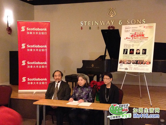 【加国生活网】李德伦音乐基金会在SteinwayPianoGalleryRecitalHall召开新闻发布会,宣布“2015中西汇粹新年音乐会”于2015年1月10日举行。基金会理事长李燕、Scotiabank亚洲业务部总监杨梁玉仪等在会上作了发言,Pondo Communications总裁Victor 鞠及加拿大中国专业人士协会、北美国际交流协会、李德伦音乐基金会成员及指挥赖德梧先生,女高音歌唱家刘玉梅、男高音歌唱家李华典等出席了发布会。青少年钢琴家麦子轩Jonathan Mak 演奏了李斯特第12号匈牙利狂想曲。刘玉梅在招待会上在钢琴家伊嘎的钢琴伴奏下演唱了普契尼的“我亲爱的父亲”,男高音歌唱家李华典演唱了王洛宾写的歌曲“在那遥远的地方”。他们的精彩演唱收到在场媒体的热烈欢迎。
