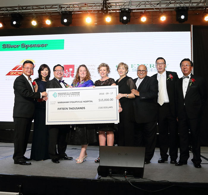 【加国生活网】烈治文山市&万锦市华商会新一届会长及会董就职晚宴于2016年9月17日成功举行,当晚同时庆祝该会成立23周年,约700位嘉宾出席。晚宴部分收益将捐给万锦多福医院(Markham Stouffville Hospital),回馈社会。