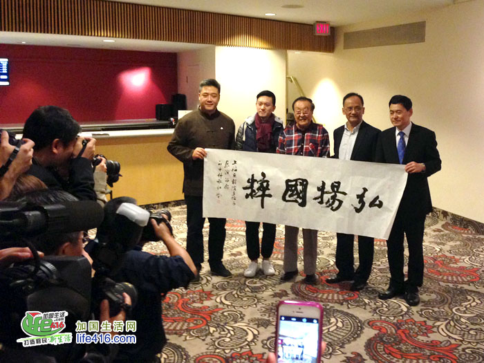 著名书法家耿彬特书墨宝赠送上海京剧院一行,代表多伦多的同胞表达欢迎之情
