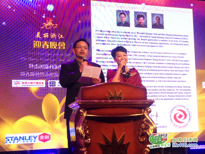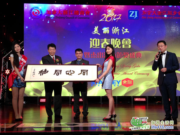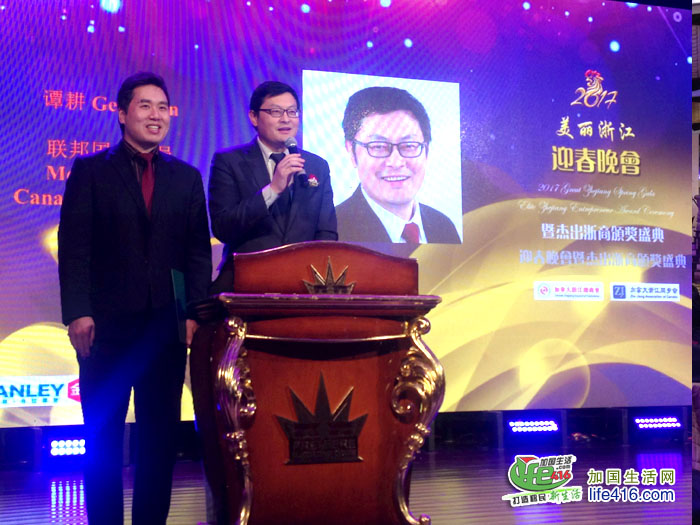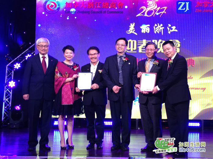 【加国生活网】为庆祝中国传统的鸡年, 由加拿大浙江同乡会与加拿大浙江总商会两大社团共同举办,并由Stanley金融提供独家主题赞助的2017美丽浙江迎春晚会暨杰出浙商年度颁奖仪式于2017年3月5日在多伦多成功举办。加拿大总理杜鲁多专门发来贺信以示祝贺。加拿大三级政府官员, 中国驻加拿大使领馆官员,本地多家社团和机构的代表及浙江乡亲600多人云集钓鱼台国宴,共同见证了这一精彩瞬间。