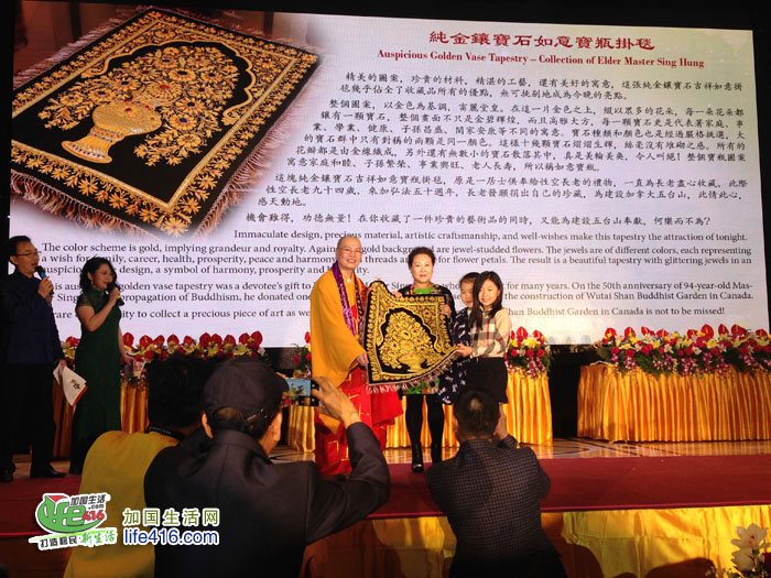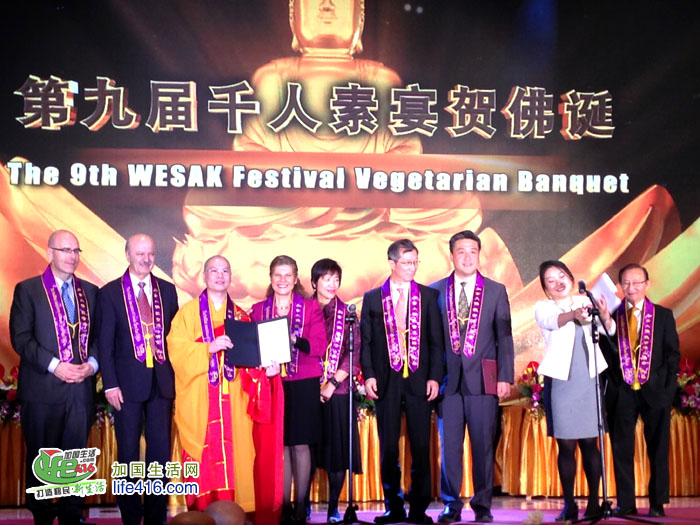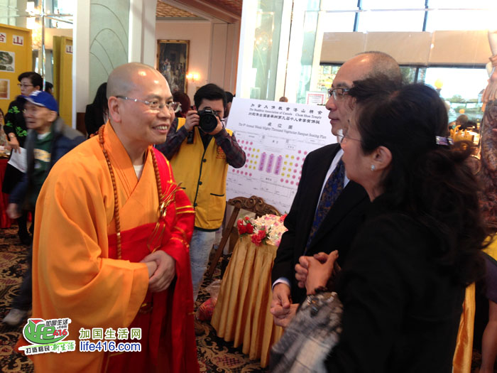 由于今年是湛山精舍乐渡、性空、诚祥等三位开山长老来加拿大弘法50周年,又是加拿大建国一百五十周年,所以,本届千人素宴贺佛诞活动显得更加的隆重和殊胜。来自加拿大政府的代表、各界社会名流和佛教界护法居士近2000人相聚于钓鱼台国宴和五台山素宴,共同参与今年的浴佛节和佛诞庆祝活动。