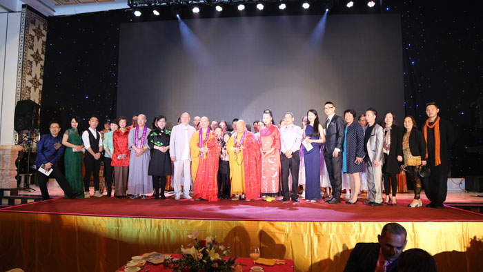 来自中国的敬善缘和火风两位实力派艺术家的加盟义演,将整台晚会推向高潮。新版西游记的观音菩萨扮演者敬善媛老师为大家带来的优秀作品《赞佛偈》、《黄财神心咒》和《一个小心愿》,将大众带入法喜充满的禅悦体验之中。火风老师演唱的《七朵莲花》、《大花轿》也令整台晚会火了起来,宾客们深感不虚此行。