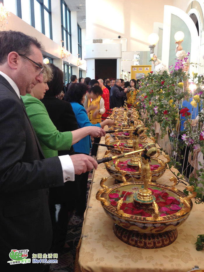 来自加拿大政府的代表、各界社会名流和佛教界护法居士近2000人相聚于钓鱼台国宴和五台山素宴,共同参与今年的浴佛节和佛诞庆祝活动