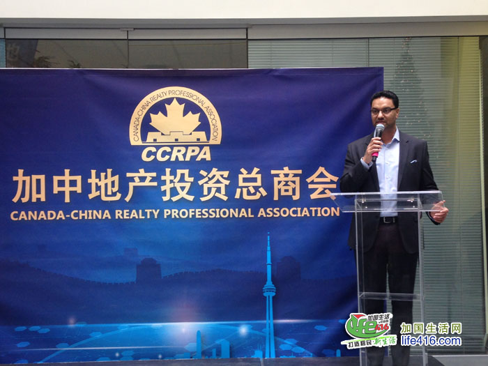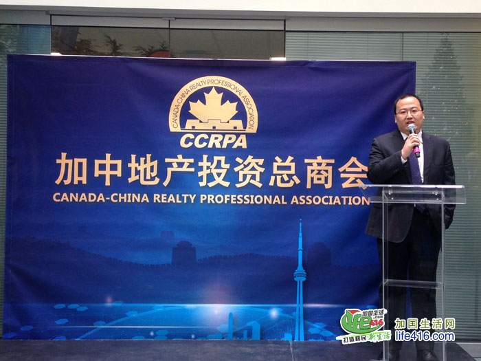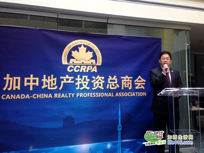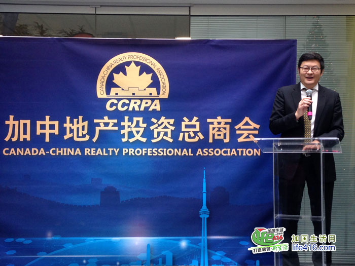 加中地产投资总商会会长孙志峰(STEVENSUN)首先致辞,他表示加中地产投资总商会(Canada-ChinaRealtyProfessionalAssociation,以下简称CCRPA)经过11年的发展,现拥有超过5000多名地产及相关行业会员,是加拿大华人社区最大规模的地产协会,是搭建中加两国地产交流与合作平台的民间团体,11年来商会逐步在发展和完善,同时愿意倾听不同的意见和建议,进一步提高商会的功能,为社区内整体行业的良性发展做出应有的贡献。