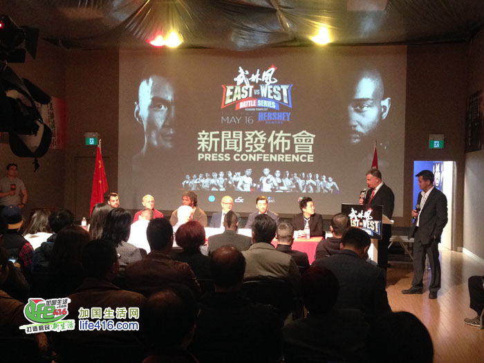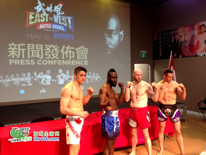 【加国生活网】加拿大新动力传媒集团(Xinflix Media Inc.)联同中国河南电视台(简称HNTV)于2017年4月26日举行新闻发布会,宣布2017《武林风》首届中加自由搏击争霸战将于5月16日下午6时于密西沙加Hershey Centre盛大举行。加拿大自由搏击协会理事会总裁Stephen Nash,加拿大三届柔术冠军、两届潘克拉辛格斗冠军及前UFC冠军Carlos Newton,电信巨头Distributel主席Mel Cohen及总裁Matt Stein,赛事当天的英语司仪John Nash等嘉宾出席。百多位各界人士出席。数十家本地英文及中文媒体参加了新闻发布会。尤其引人注目的是,将代表加拿大出战本次争霸赛的四位选手首次登台亮相。