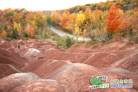 加国生活网小编后记:在加拿大,丹霞地貌搭配枫叶的景色是这样滴,可惜美景依旧却不能驻足太久观看了(在那里停车久了小心警察过来会抄牌哟),详情请戳这里。
