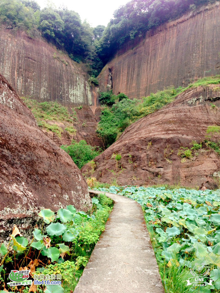 沿着荷花塘间的小路,一边看荷叶,一边看丹霞,心情极好