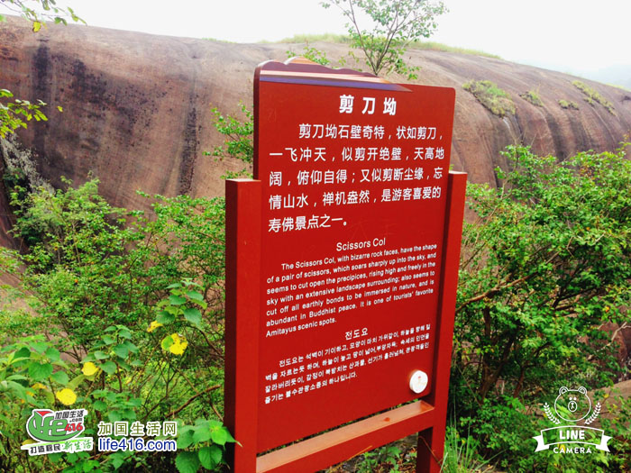 有两处景点小编一定要提一下,一处叫“剪刀坳”,石壁奇特,状如剪刀,一飞冲天,似剪开绝壁,天高地阔,俯仰自得;又似剪断尘缘,忘情山水,禅机盎然,是游客喜爱的寿佛景点之一。