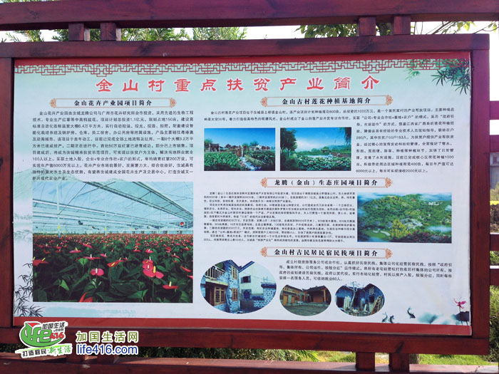 我们到金山古村采访时,由于已经过了荷花盛开的季节,所以看到的只是没有荷花光有荷叶的景象。