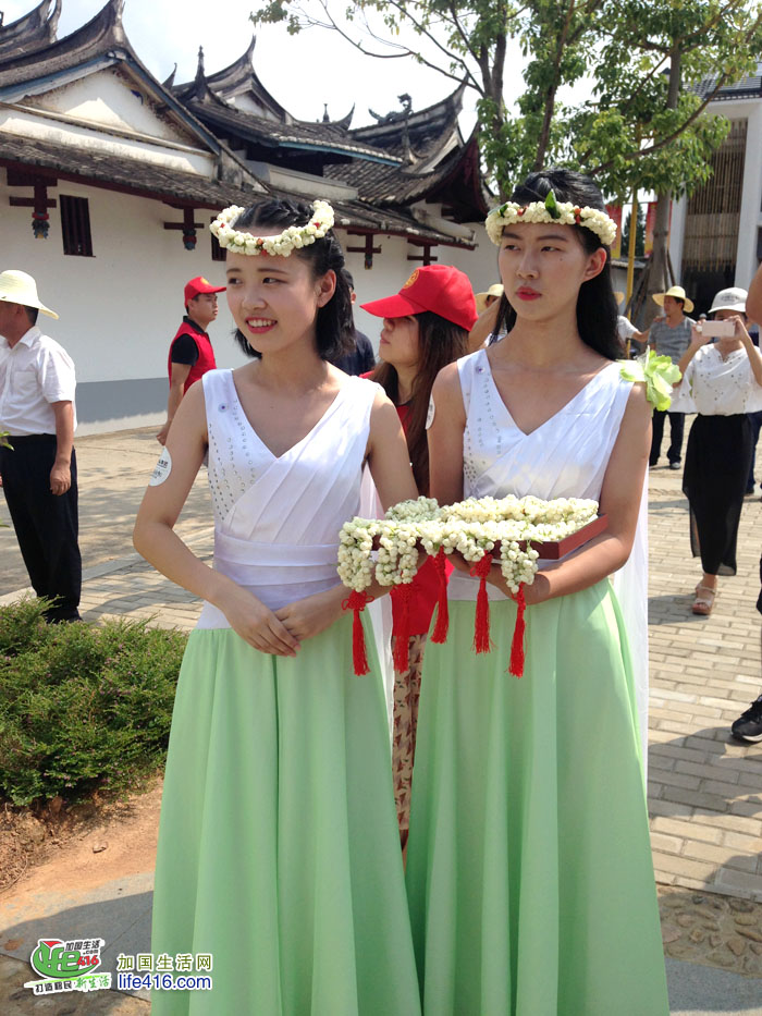 在梧桐镇的春光村,一群漂亮的MM给海外媒体团的每一位成员都献上了一串长长的茉莉花环