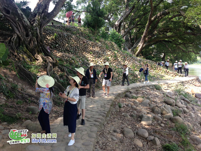 村内大樟溪畔旁种有15棵百年的古榕树,枝叶茂盛,雄伟壮观。这一棵榕树已经有600多年了,这种榕树叫小叶榕,和在福州看到的榕树稍有不同,因为几百年一直在溪边生长,它已经不需要从树枝上分出须须来吸收水份,粗壮的树根直接就能从溪水中吸收水份了。