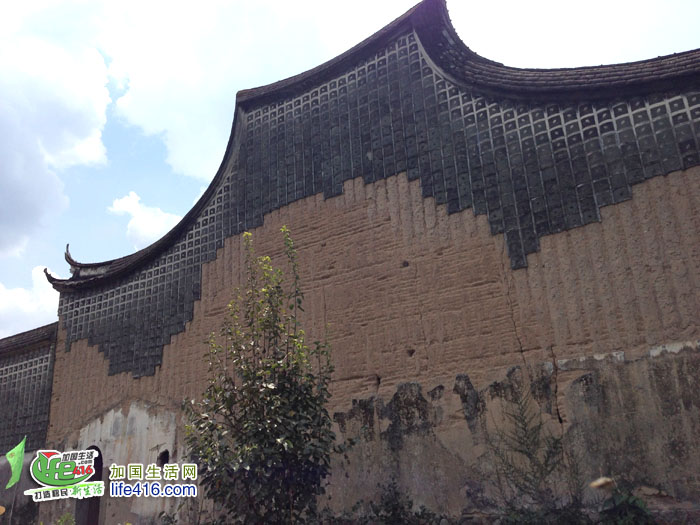 黄灰黑,则形容建筑色调基本融合黄、灰、黑三种颜色。瓦上墙,是指在垂直的墙面上直接贴上瓦片,没有用到水泥等粘性材料,可见工艺之精湛。