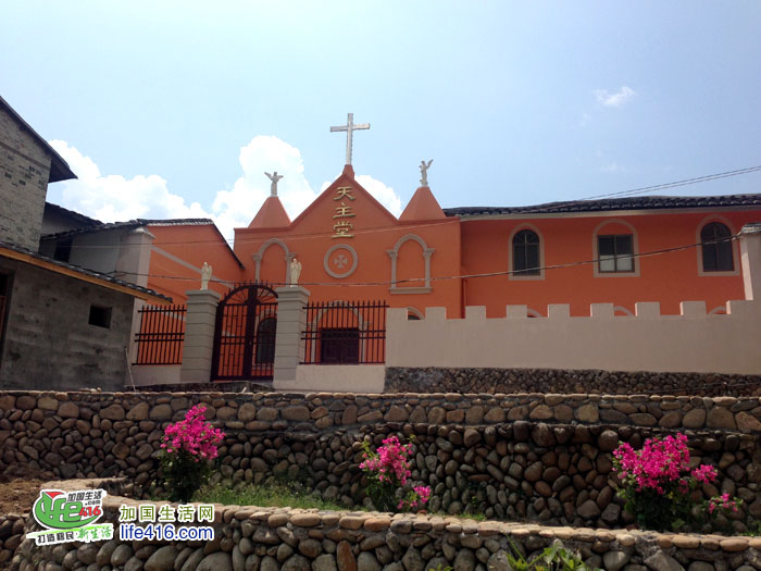 古渡口是嵩口古镇繁荣的源头,来自四面八方、不同身份的人通过古渡口进入嵩口,他们带来的文化在此沉淀、发展,逐渐孕育了嵩口丰富多彩的文化瑰宝。 于是在嵩口镇你会看到各种各样的建筑、各种各样的宗教流派,比如天主教。
