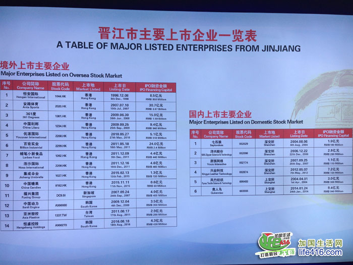 【加国生活网专稿】还未从平潭的美景神游回来,大巴车窗外的景色又变成了灯火辉煌、高楼林立的城市景象,海外媒体团又来到了晋江。小编不相信这么洋气的一座城市还只是福建的县级市,繁华的感觉就象来到了上海。不相信也得相信,而且晋江还有更多让人不相信的超级牛的业绩:拥有体育装备制造和纺织服装这2个超千亿行业,还有7个超百亿产业群,42个全国知名品牌,46家上市公司,连续23年综合经济实力位居福建省首位。