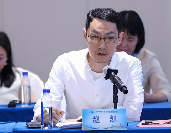 福建侨报副社长赵凯分享了在人工智能时代对媒体发展的三点核心思考。他指出,首先AI在真实性、职业结构和传播逻辑上带来挑战,但更着重展示了其作为生产力工具的机遇。通过创建数字人,生成创意内容、构建知识库等实践,积极探索AI赋能,以提升内容创造力和传播效率。其次,在算法分发时代,媒体必须从“信息搬运通道”转向打造具有高辨识度的品牌IP。这不仅体现在统一的视觉风格和栏目系列上,更深层次的是回归并唤醒中华文化的共同底色,以此形成超越算法的、最根本的文化识别度和情感连接。最后赵凯回顾了媒体在历史洪流中始终肩负的使命,他强调,当前尽管面临诸多生存挑战,但华媒的力量源于热爱与信念的坚守,其核心价值在于成为情感的桥梁、文化的舞台和理解的窗口,通过报道让世界看到一个真实、多元、立体的中国。