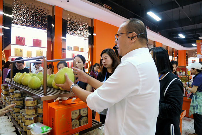 华媒福建行的最后一站是莆田优品城市展厅,这里汇聚了莆田制造的优质产品与区域品牌成果,呈现出一幅莆田精粹图景:巧夺天工的木雕与红木家具、引领潮流的原创鞋服,以及来自莆田各地的特色美食等。华媒代表们对美食与文创产品表现出浓厚兴趣,纷纷驻足品尝、踊跃选购。
