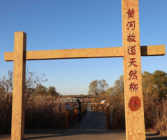 黄河故道天然柳林木栈道入口