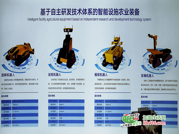 科研团队还研发了多种服务于设施农业的智能小机器人,包含旋耕机器人(用来耕地)、巡检机器人(自主预防、安全巡逻、农情观察)、植保机器人(喷水或者喷农药)、采摘机器人。