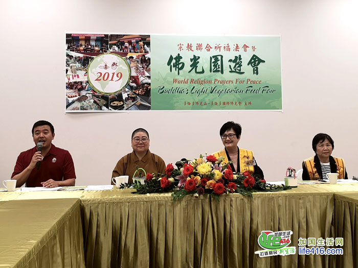 【加国生活网】多伦多佛光山和多伦多国际佛光会联合于2019年5月15日在万锦佛光缘举行新闻发布会,宣布“2019宗教联合祈福法会暨佛光园游会”将于6月2日在密西沙加市多伦多佛光山盛大举行,主办单位诚挚邀请社区朋友参加,支持素食、环保及文教慈善,共创健康和谐社会。