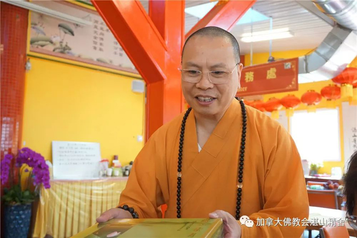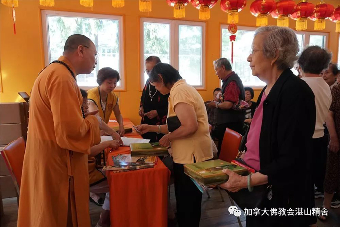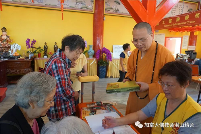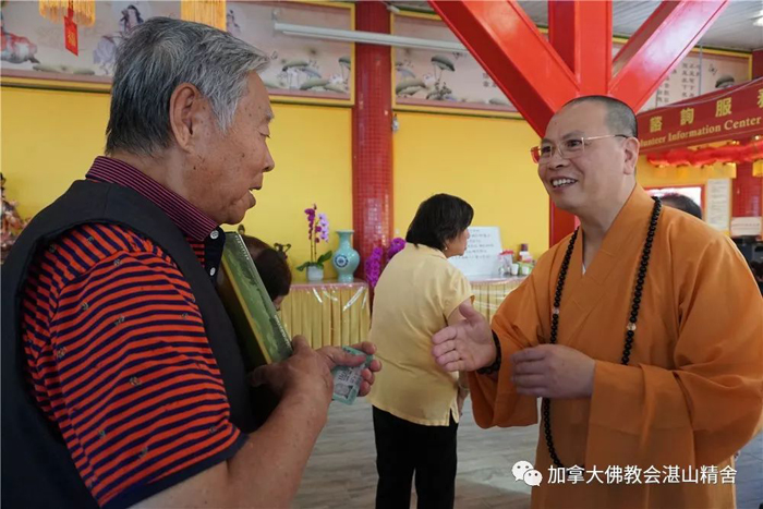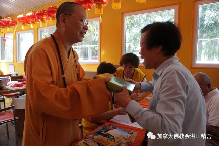 加拿大佛教会会长、湛山精舍住持达义大和尚在现场向老人家们赠送了「湛山素月饼」,并与大家进行了亲切的交谈。