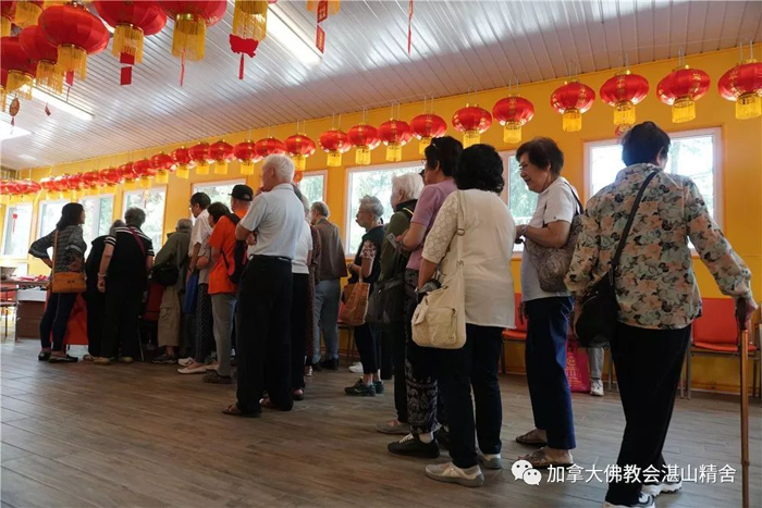 【加国生活网】2019年8月19日上午,湛山精舍普贤殿里人头攒动,上百位精神矍铄的老人家纷纷赶来这里,满心欢喜地领取湛山精舍在中秋节前第一天免费赠送的「湛山素月饼」。