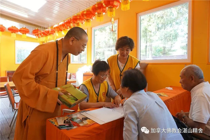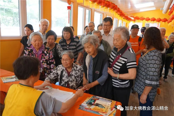 据统计,仅仅是今天,湛山精舍就向老人家们赠送了近200盒「湛山素月饼」。八月十五中秋节前夕,湛山精舍向耆老们和养老院分别赠送1000盒「湛山素月饼」,总共价值5万加元,送完为止。凡七十五岁及以上的长者,凭公民证或有效枫叶卡,可前往湛山精舍领取价值30元的免费「湛山素月饼」一盒。