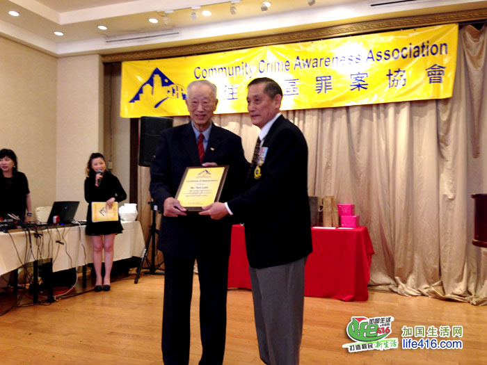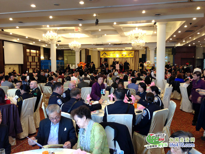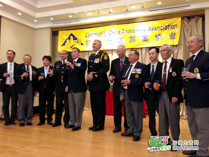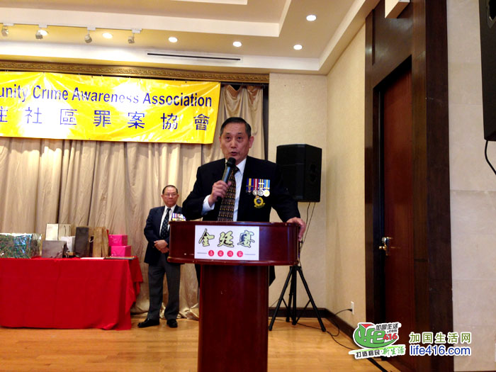 【加国生活网】为庆祝成立20周年,由前华裔警官苗延建担任会长的关注社区罪案协会(Community Crime Awareness Association,简称CCAA)于2017年6月4日星期日晚在万锦市万锦广场的金廷宴酒家举行了庆祝20周年晚宴,包括约克区警局副警察总长Dave Javis、Andre Crawford、多伦多市议员李振光、万锦市市议员何胡景、多伦多华人团体联合总会会长林性勇、东区华商会会长罗耀坤等嘉宾在内的300余人出席了此次晚宴。