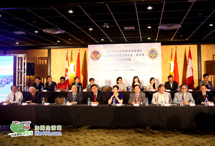 【加国生活网】加拿大深圳社团联合总会于7月26日在多伦多宣布成立,并计划于今年9月17日召开第二届国际深圳社团大会(多伦多)。在周二于爱德华酒店举办的新闻发布会上,新任加拿大深圳社团联合总会主席齐佳、共同主席龚晓华、苏雄、郑永麟、刘桓铭、龙佳、黎楚云、理事长谭仕称等向来宾与媒体朋友介绍了加拿大深圳社团联合总会成立暨主办第二届国际深圳社团大会(多伦多)的具体情况。