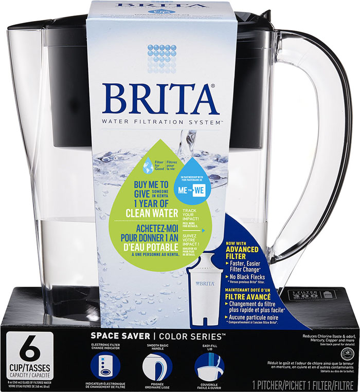 Brita的特有标志滤芯和滤水壶于2016年9月1日开始,在加拿大各地的主要零售商限期发售。