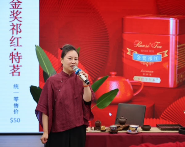 主持人Jasmine Meng 介绍此次发布会旨在弘扬中国茶文化,推介经典祁门红茶进入加拿大社区。发布会以一段视频开场,古典的音乐中,祁门红茶的故事娓娓道来。祁红源于1875年,由清末卸任大臣余干臣在家乡安徽池州采用当地群体种茶叶试制成功。祁门红茶一经销往欧洲,立刻为皇室所喜爱,成为欧洲皇室下午茶主要品种,号称“群芳最”、“红茶皇后”。