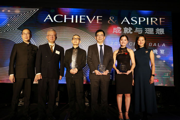 2022 CPAC “专业成就奖” 与“青年成就奖”获奖者与CPAC会长及晚宴共同主席合影,左起: 2022 CPAC Gala共同主席、CPAC基金会理事张怡专(Adrian Cheung)、CPAC会长王体博士、2022CPAC专业成就奖获奖者高韶青先生、2022CPAC专业成就奖获奖者郑岗教授、2022CPAC青年成就奖获奖者陈辰、2022 CPAC Gala共同主席、CPAC副会长宋培思(Bess Song)