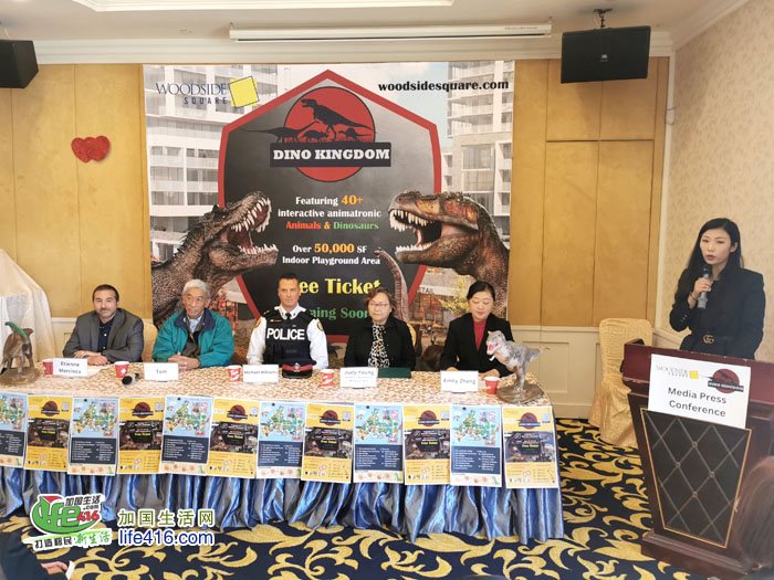 【加国生活网】Woodside Square于2022年9月23日星期五在CASA DELUX召开了有关Dino Kingdom恐龙乐园的新闻媒体发布会,当地社区议员代表、周围学校校长及学校代表、42分局警察代表及社区委员会主席、中外多家媒体等嘉宾出席了本次新闻发布会。