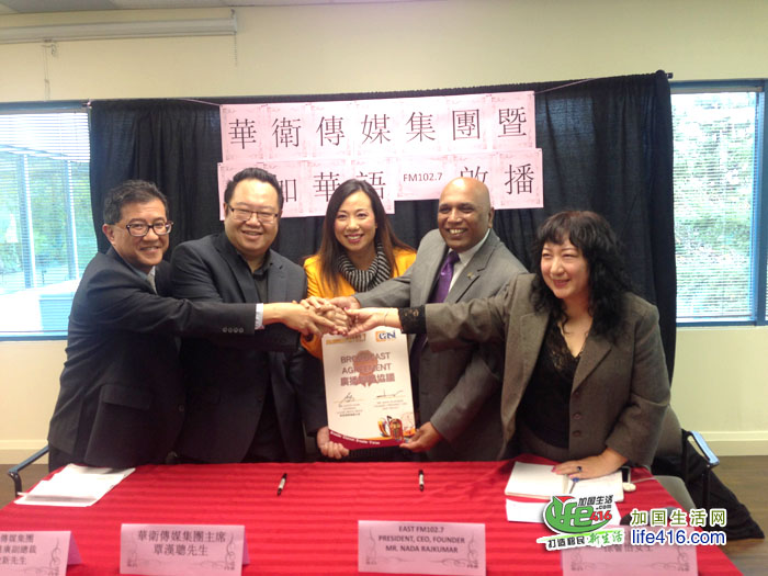 华卫传媒集团主席覃汉聪先生说,“今天确是一个值得喜庆的日子。美加华语FM102.7将进入一个新境界,这次创举也令所有听众及同事为之振奋。我们一直的格言就是服务社群及与睦邻建立良好的关系。现在,我诚邀大家跟我们一起庆祝这项盛事。调好FM102.7频道,准备于11月15日准时收听!”