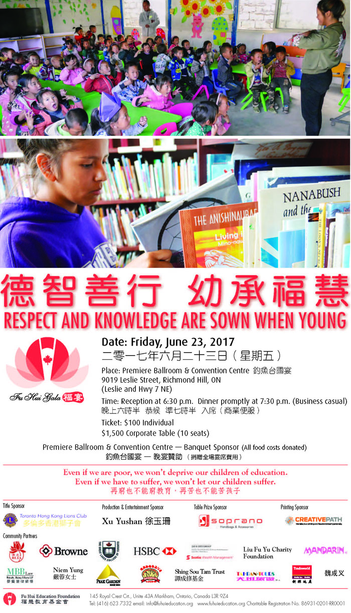 本届福宴定于6月23日晚(星期五)于钓鱼台国宴举行,当晚司仪由列治文山议员廖立晖及电视电台名节目主持人雨薇担任。福慧诚意邀请各界人士支持善举。宴席每位$100元,公司赞助每席(10位)$1,500元。详情致电416.623.7332,电邮