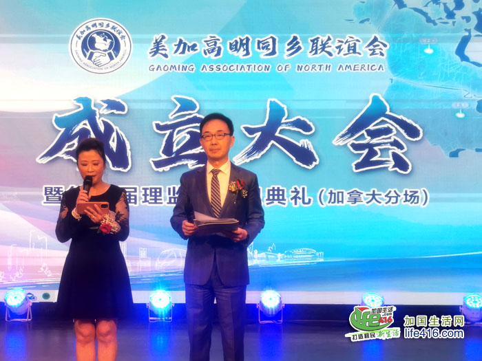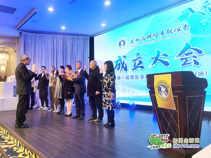 在各级政府和嘉宾的见证下,中国高明宣读美加高明同乡联谊会就职名单,并上台宣誓,宣誓结束后不同的三地进行了成立揭牌仪式,在嘉宾的共同见证下美加高明同乡联谊会正式成立。