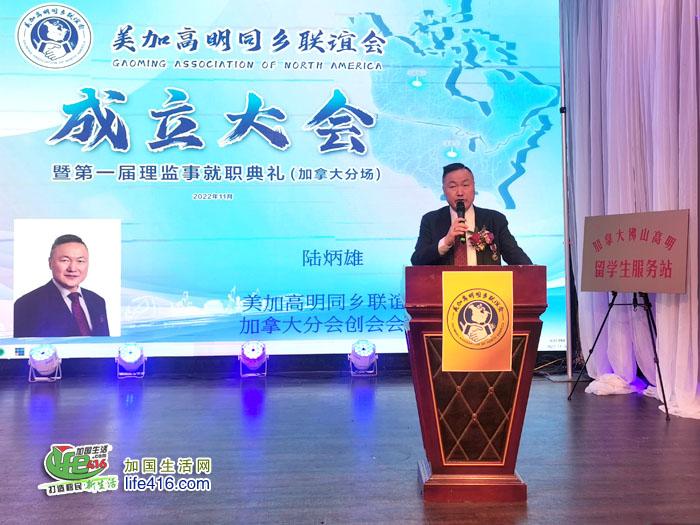首先由美加高明同乡联谊会多伦多分会创始会长陆炳雄致辞:"美加高明同乡联谊会是由旅美国和加拿大的高明乡亲自愿组成的联合性、非盈利性华人华侨社团。联谊会创会宗旨是守望相助,维护权益,联谊交友,共促发展,联络高明籍华人华侨,促进乡亲与家乡高明的联系与互动。