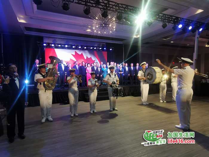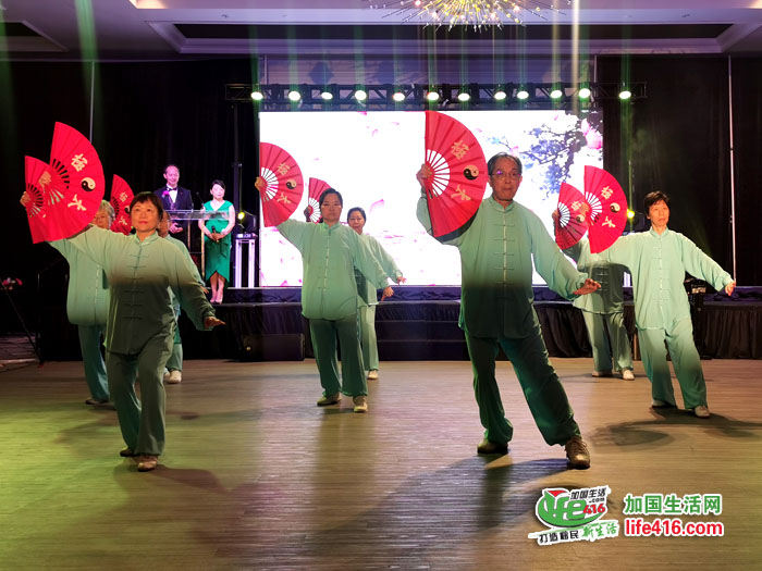 晚会由His Majesty's Canadian Ship York Band军乐队奏国歌,并由太极师傅郭咏观医生带领多位学员表演精彩的太极功夫扇,以太极刚柔融合,彰显今年的主题。
