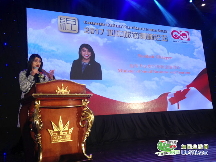 加拿大联邦小企业及旅游部长楚萱歌(Bardish Chagger)发表主题演讲